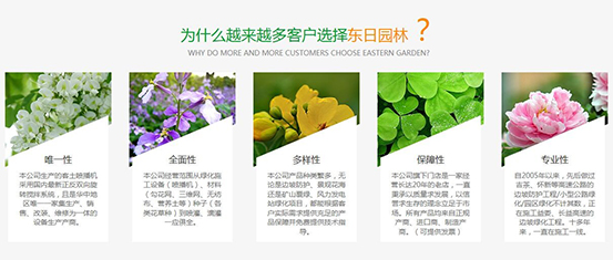 長沙東日園林工程有限公司是一家集園林綠化工程、假山、音樂噴泉、水景工程施工、高速公路邊坡防護(hù)和綠化工程、綠化養(yǎng)護(hù)管理、苗木花卉生產(chǎn)及草種、園藝資材銷售于一體的綜合性國家園林三級資質(zhì)企業(yè)。咨詢熱線:0731-85316467